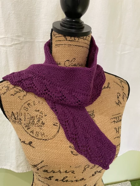 Small lace-edged wool and silk blend shawlette. Measures approximately 36" long.Hand wash cool.