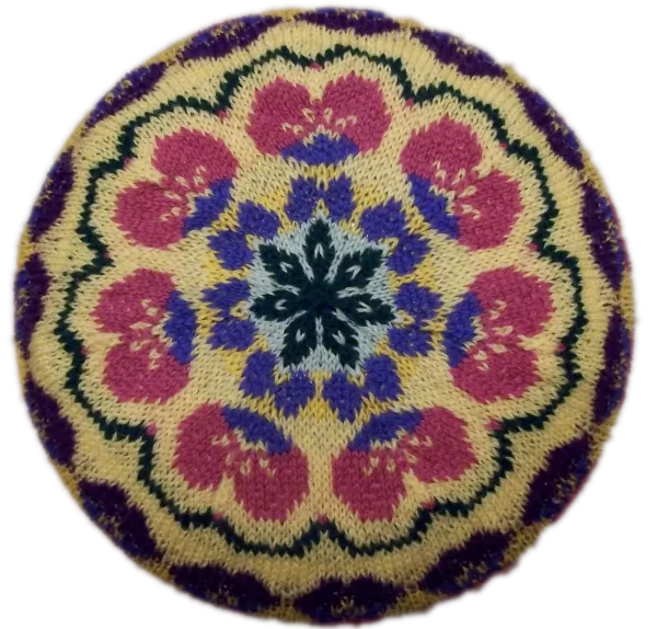 It's Spring! The daffodils are blooming and my friends are beginning to put some pansies in the ground.When a friend was watching me knit a hat, she asked if I'd ever thought of knitting a Pansy design. Well, that sounded like fun and what great colors it would be! My stash of yarn had some great colors that would bring the pansies to life, so I began to chart out some ideas. What a fun hat this was to knit during the Easter season!