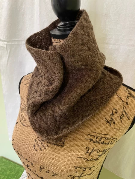 Warm Brown wool cowl.10" deep. Hand wash cool when necessary.